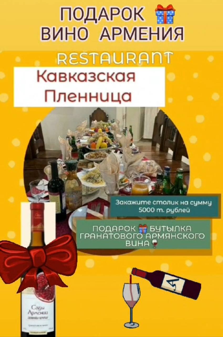 Кафе-ресторан Кавказская пленница - это винный бар. У нас вы можете приятно провести время в компании или просто оставить волнующие мысли после утомительного рабочего дня, а в этом вам с радостью помогут наши отменные бармены и ассортимент спиртного. Вам посоветуют напитки по вкусу и кошельку! Вам нужно лишь рассказать, что предпочитаете: крепость и вкус (сладкий или горьковатый). В нашей винной карте мы предлагаем богатый выбор столовых и десертных вин из различных сортов винограда.